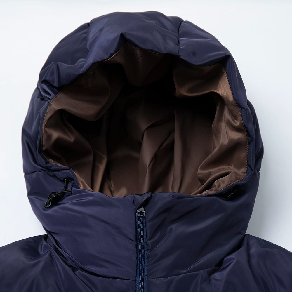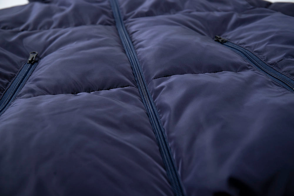 90%ホワイトダックダウンを使用したハイクオリティなアウター。ボリューム感のあるシルエットながら軽量で動きやすい仕上がりが魅力です。防寒性と快適さを兼ね備え、寒い冬の日もスタイリッシュに過ごせます。