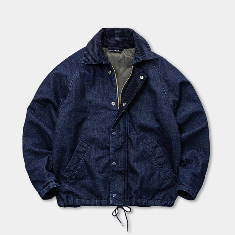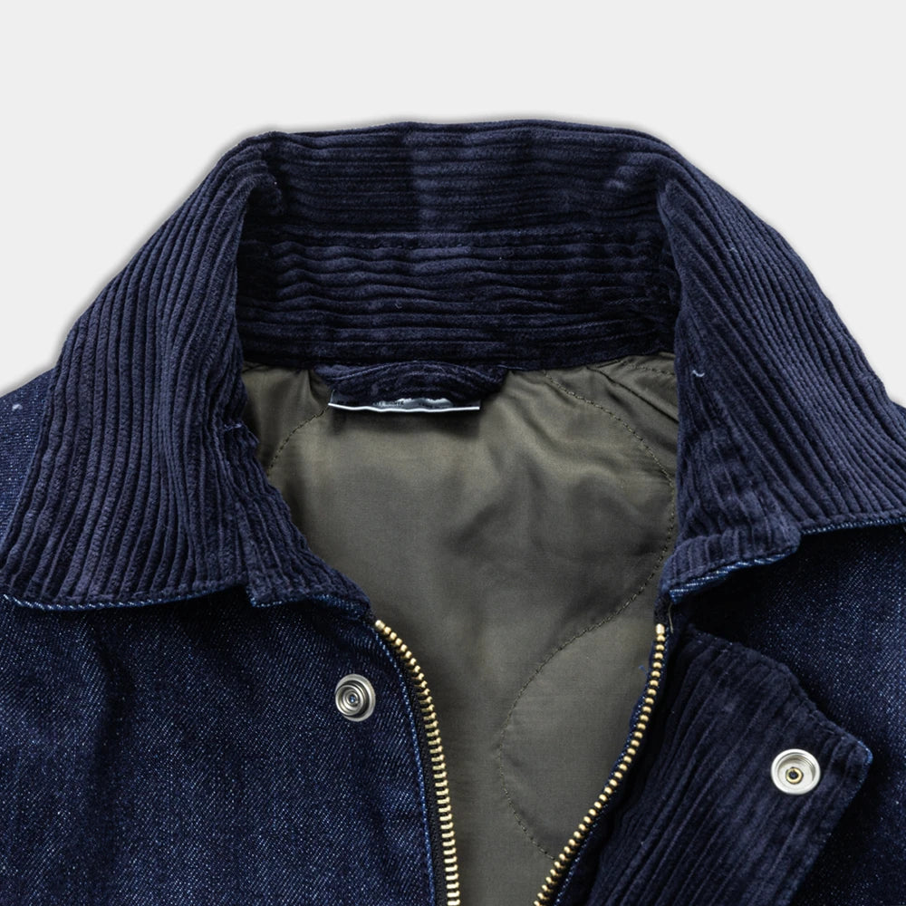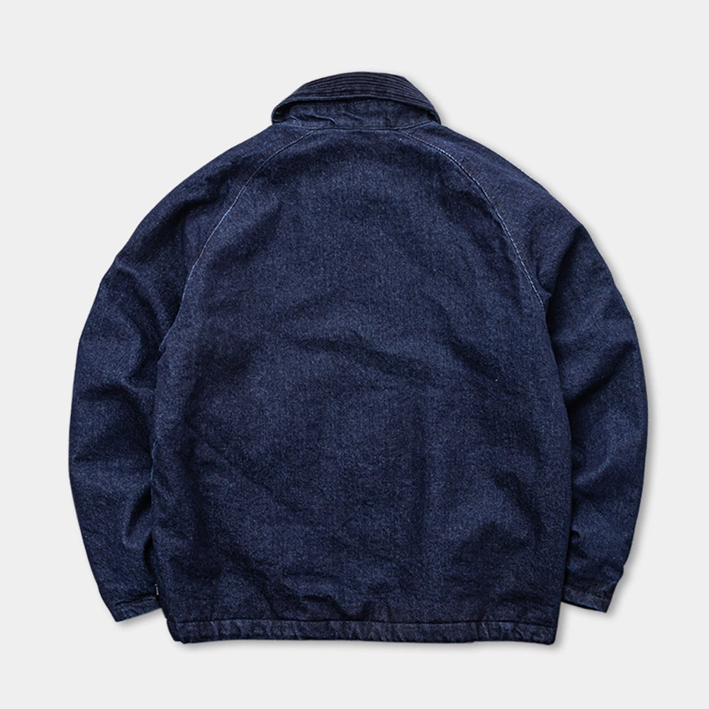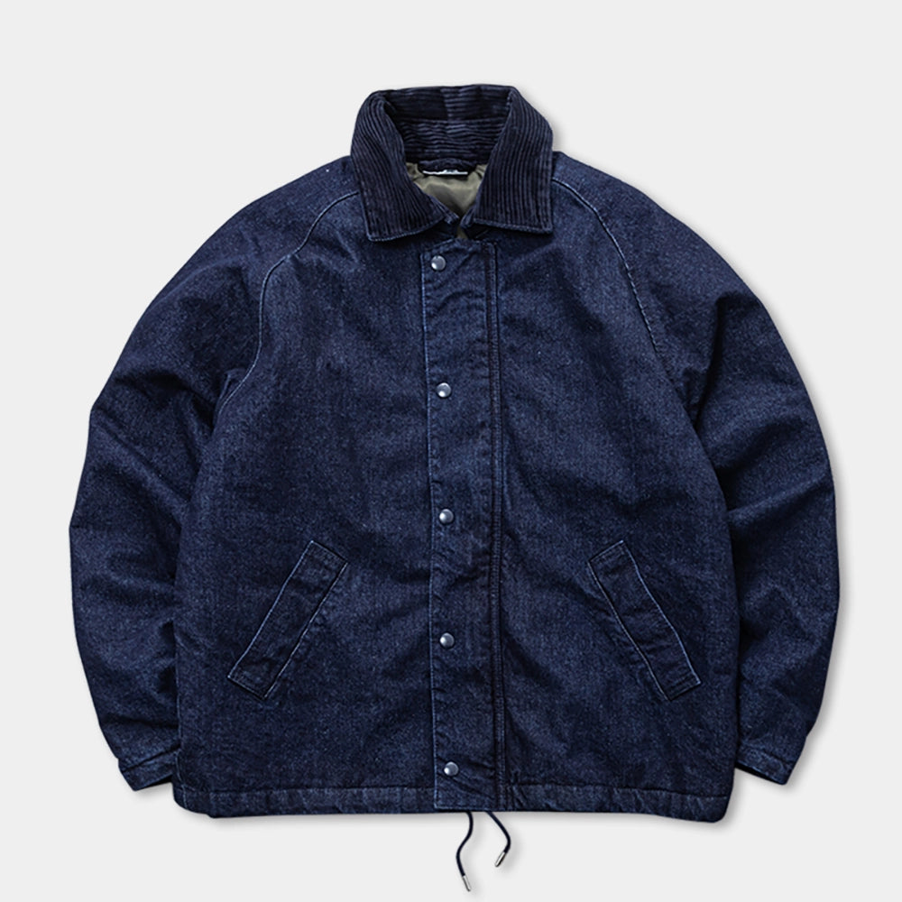 丈夫なデニム素材を使用し、しっかりとした作りが特徴の中綿入りジャケットです。オーバーダイ加工により、独特の風合いと色合いを実現し、ヴィンテージ感を感じさせるデザインに仕上がっています。襟部分にはコーデュロイ素材を採用し、クラシックな雰囲気をプラス。寒い季節でも保温性があり、カジュアルからアウトドアまで幅広いシーンで活躍するアイテムです。