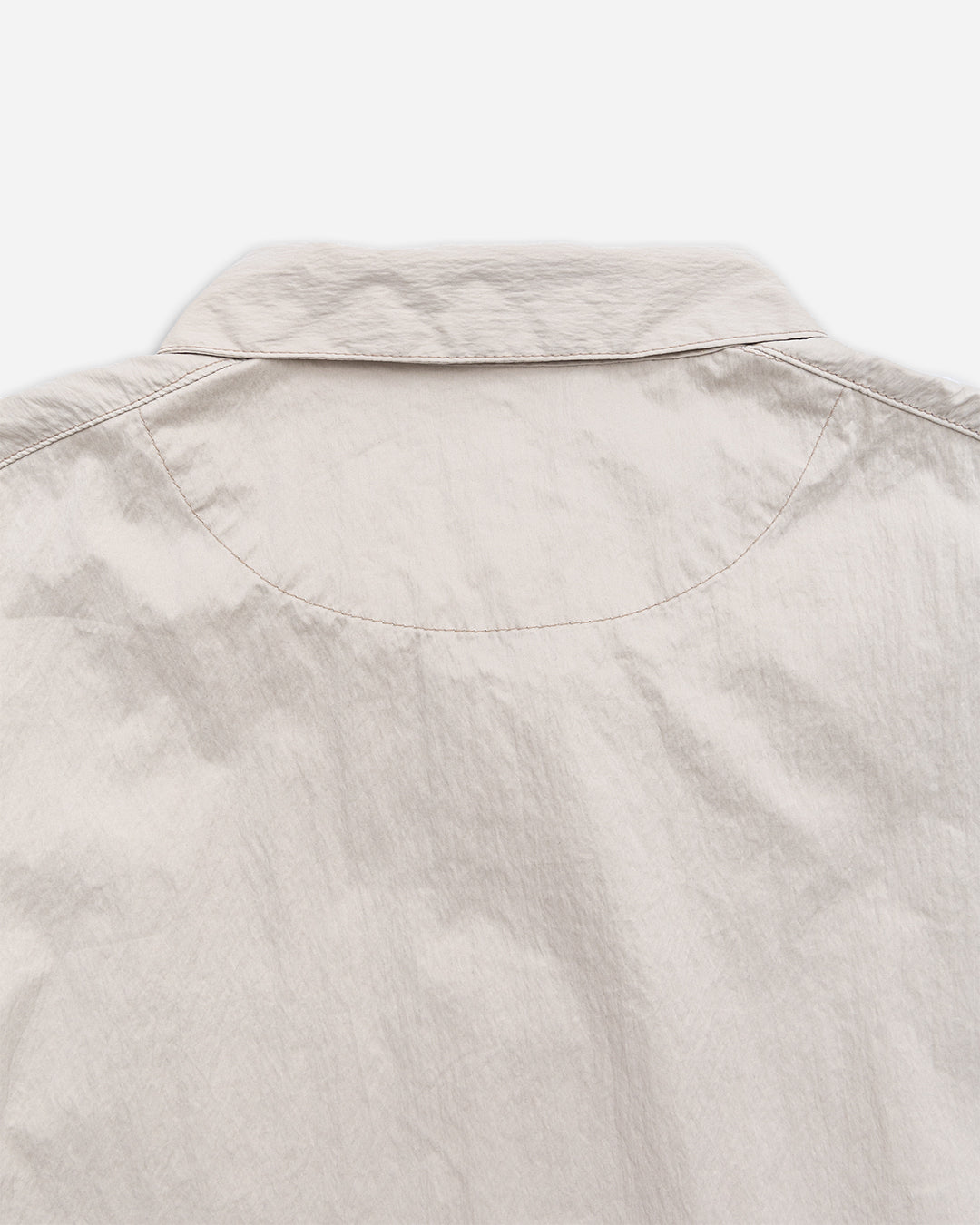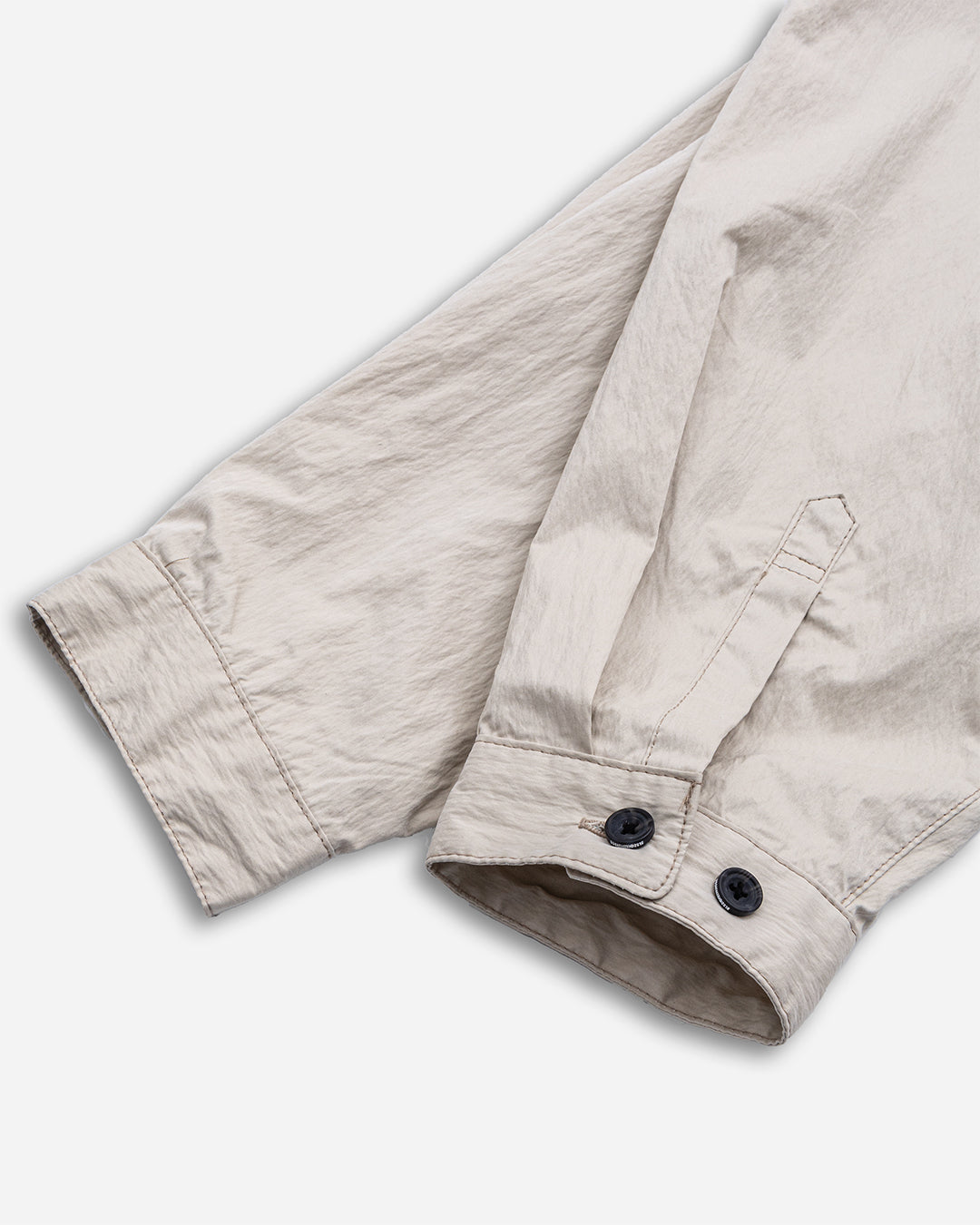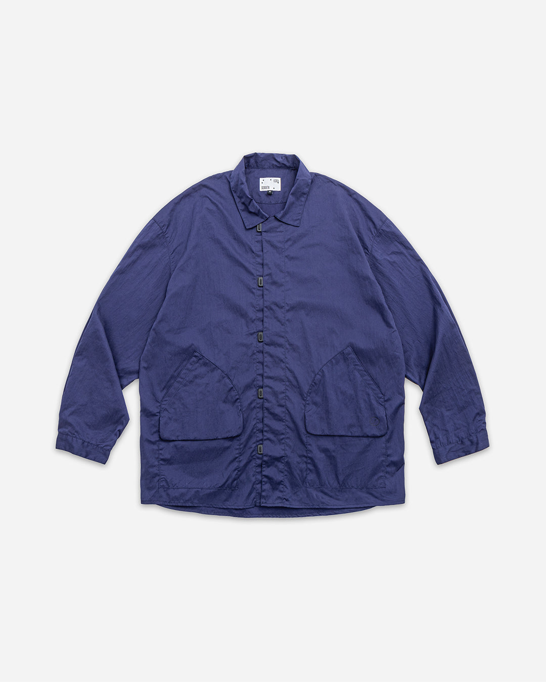 T/C素材のハイブリッドオーバーシャツ。程よいハリ感と柔らかさを兼ね備えた素材で、春先や秋口の軽アウターとして最適です。特殊なスナップボタンを採用しており、開閉がスムーズでスタイリングのアクセントにもなる一着です。