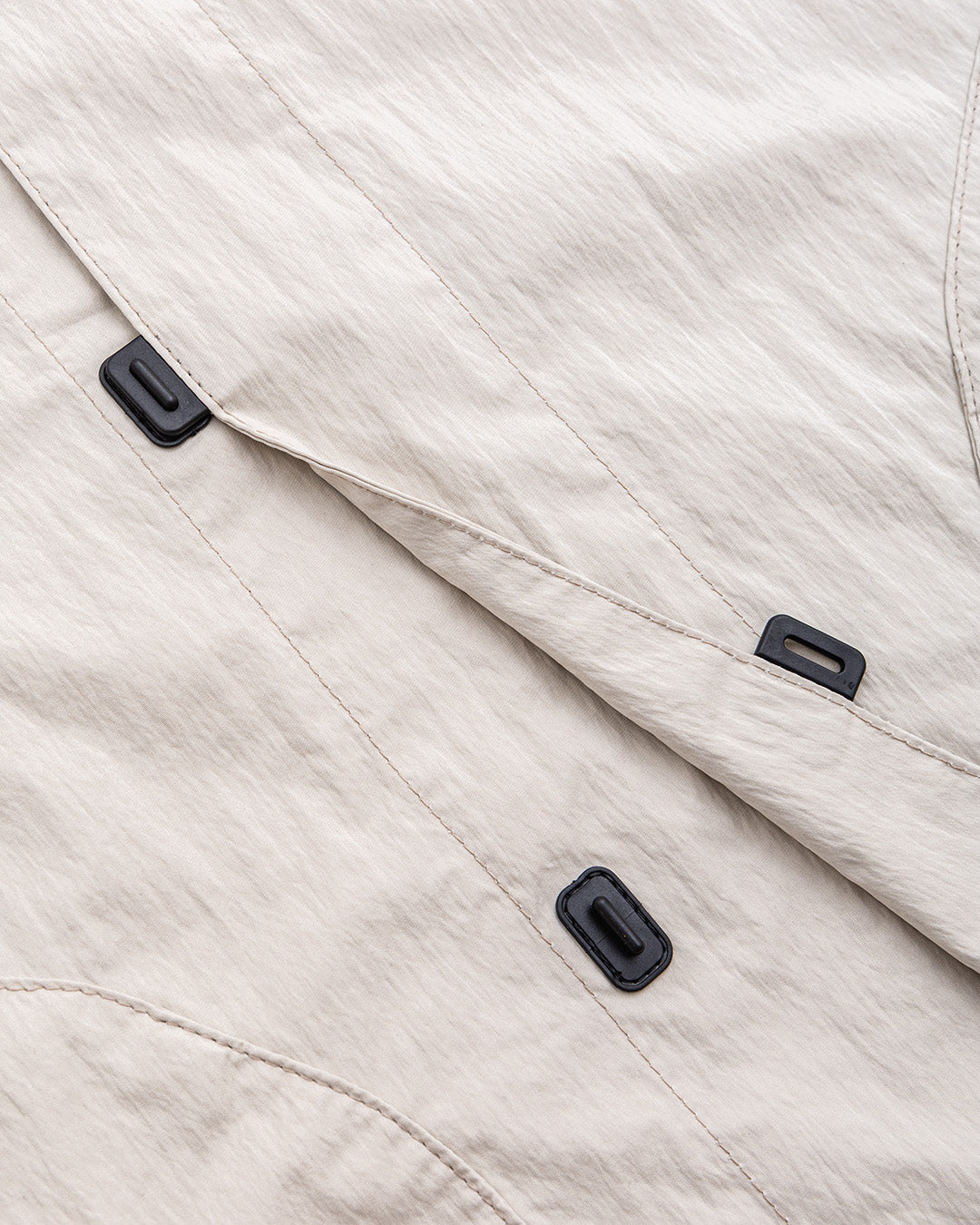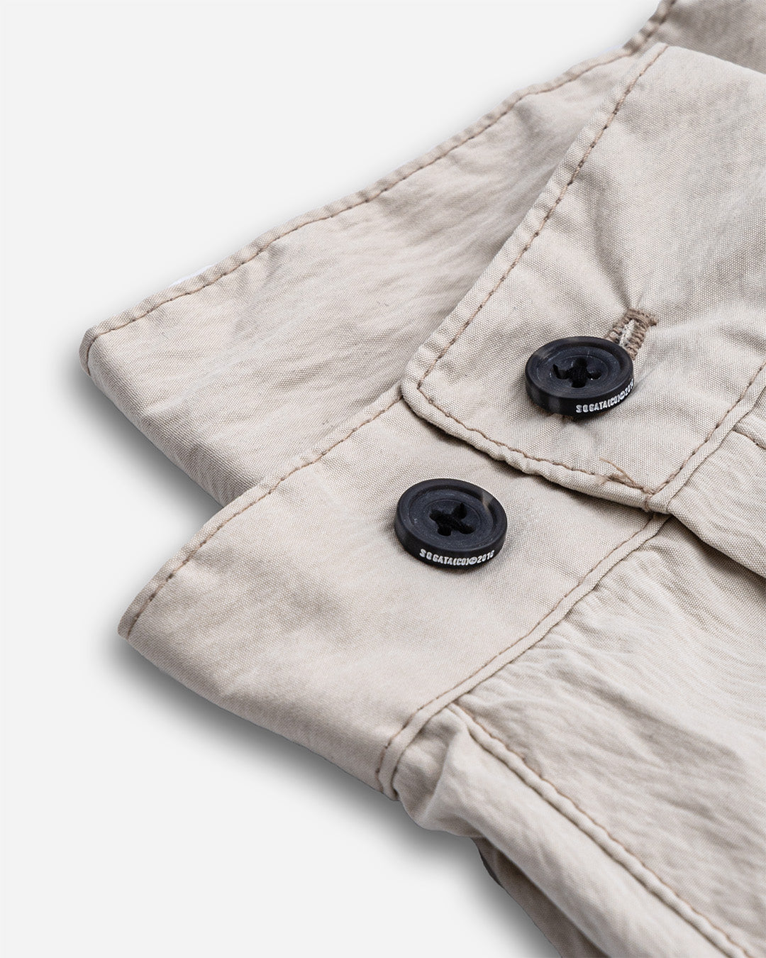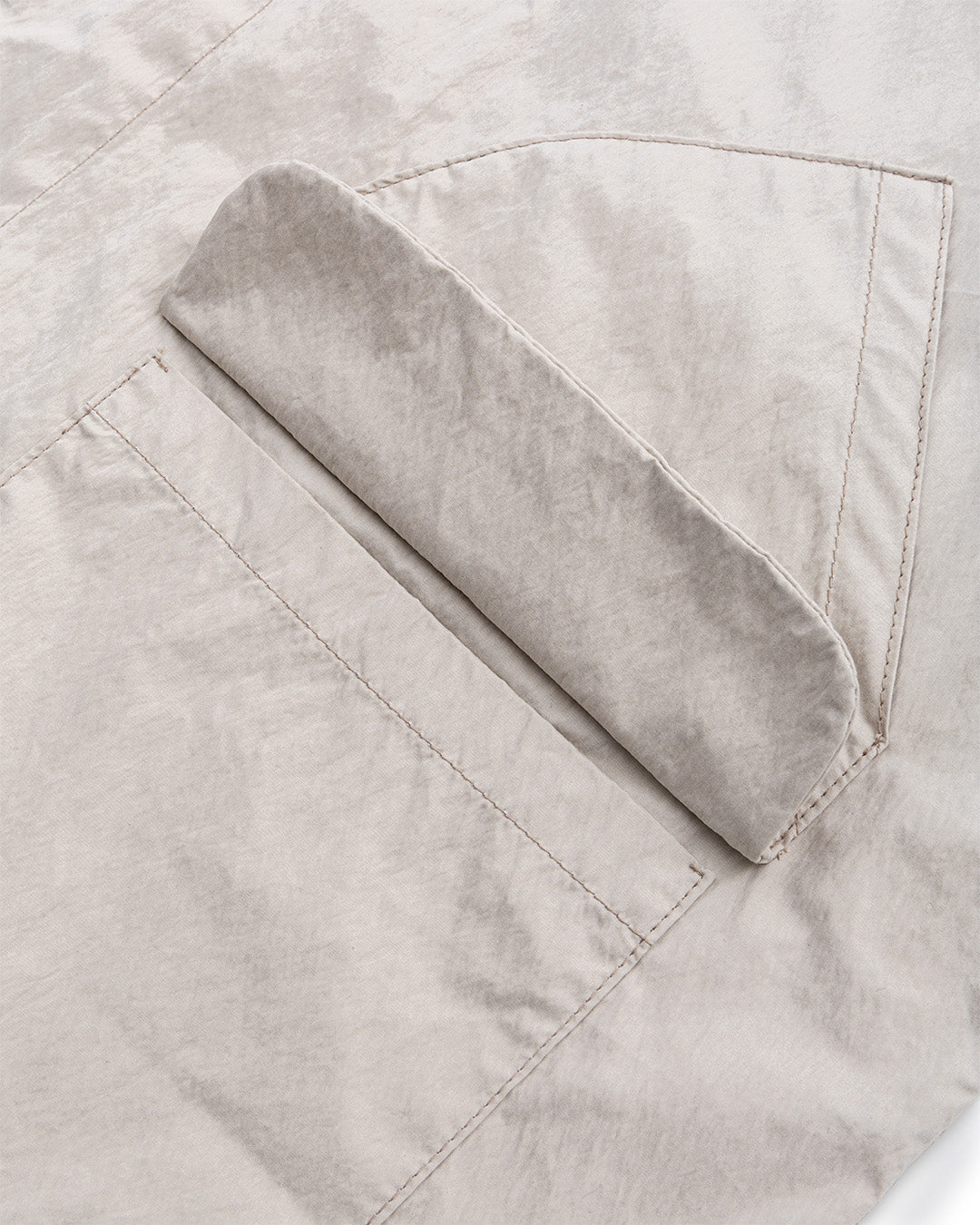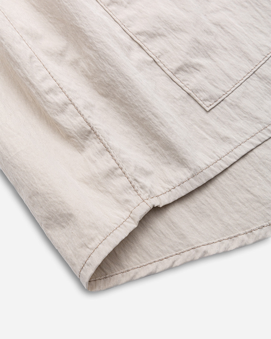 T/C素材のハイブリッドオーバーシャツ。程よいハリ感と柔らかさを兼ね備えた素材で、春先や秋口の軽アウターとして最適です。特殊なスナップボタンを採用しており、開閉がスムーズでスタイリングのアクセントにもなる一着です。