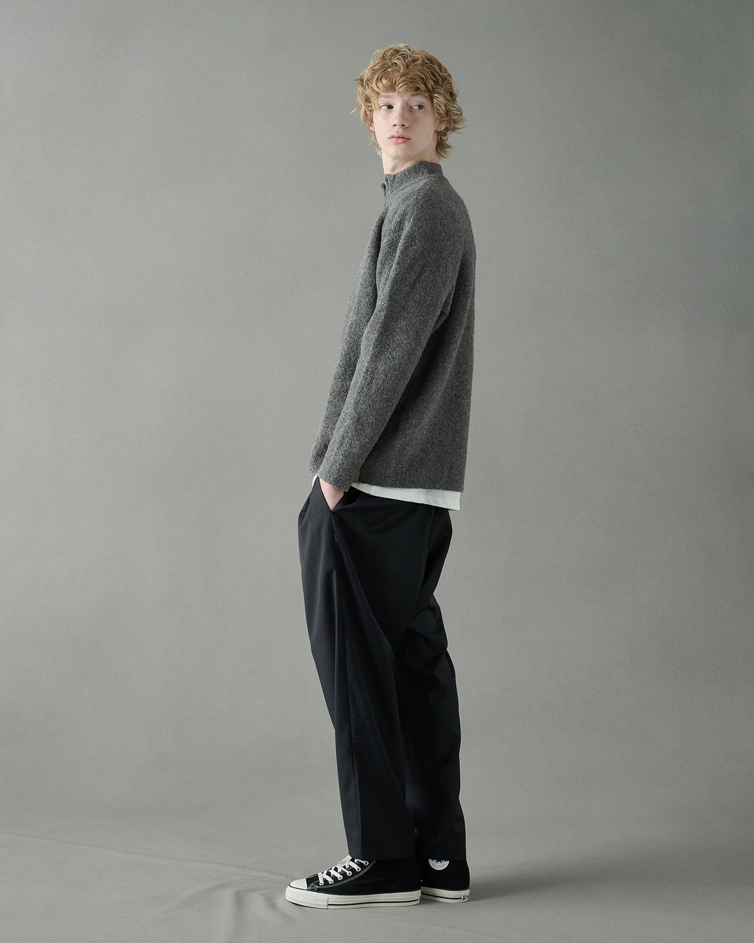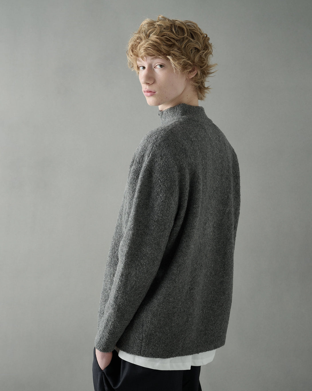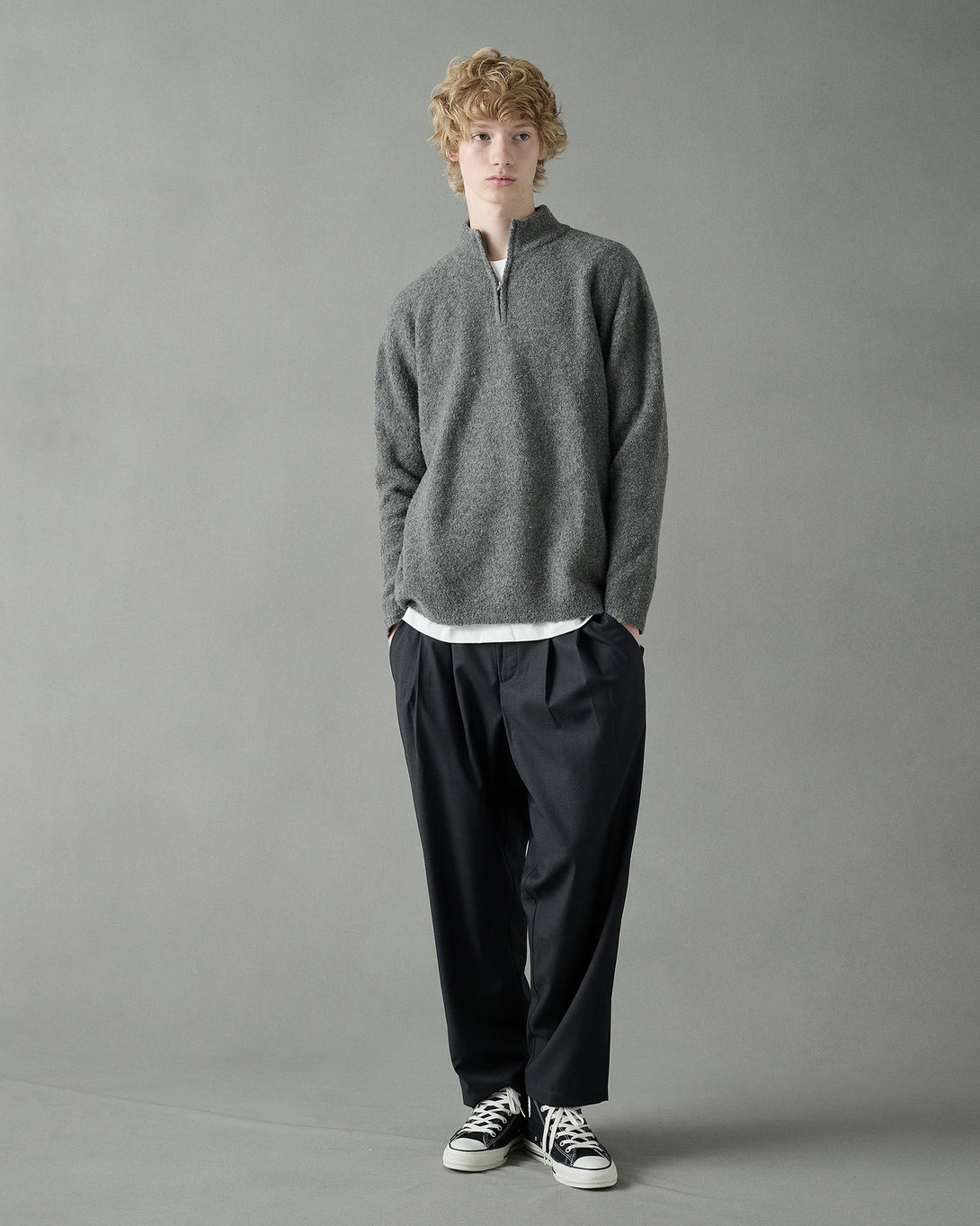 上質なウール素材を使用したハーフジップニット。スタンドカラーにジップを施すことで、着脱や首元の表情を自在に変えられます。シンプルながらも素材感とディテールで大人っぽく仕上げた一枚です。