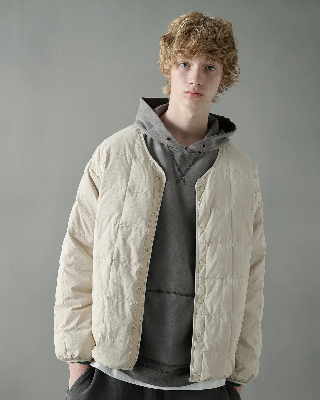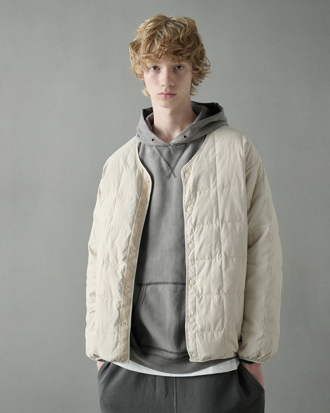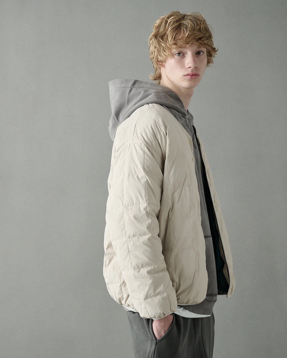 表裏で異なる表情を楽しめる、SOGATAらしい機能的かつミニマルなリバーシブルダウンジャケット。