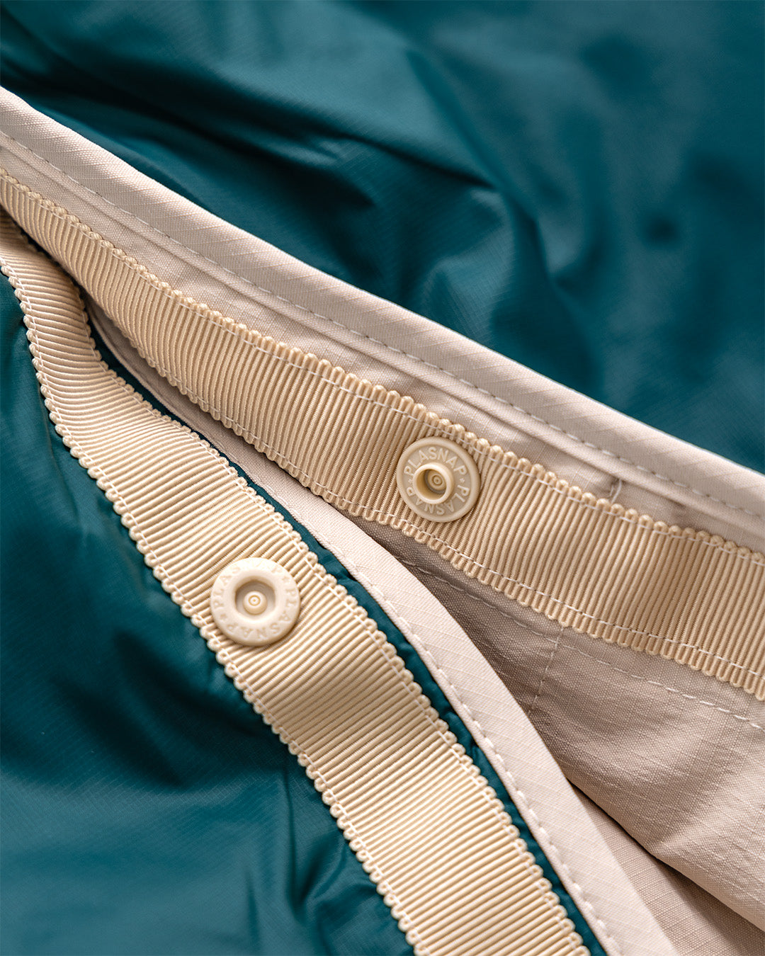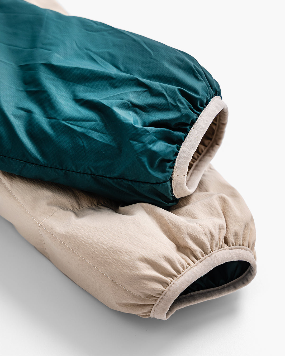 一方の面はマットなナイロン生地で落ち着いた印象、もう一方は微光沢のある素材でアクティブなムードを演出します。
