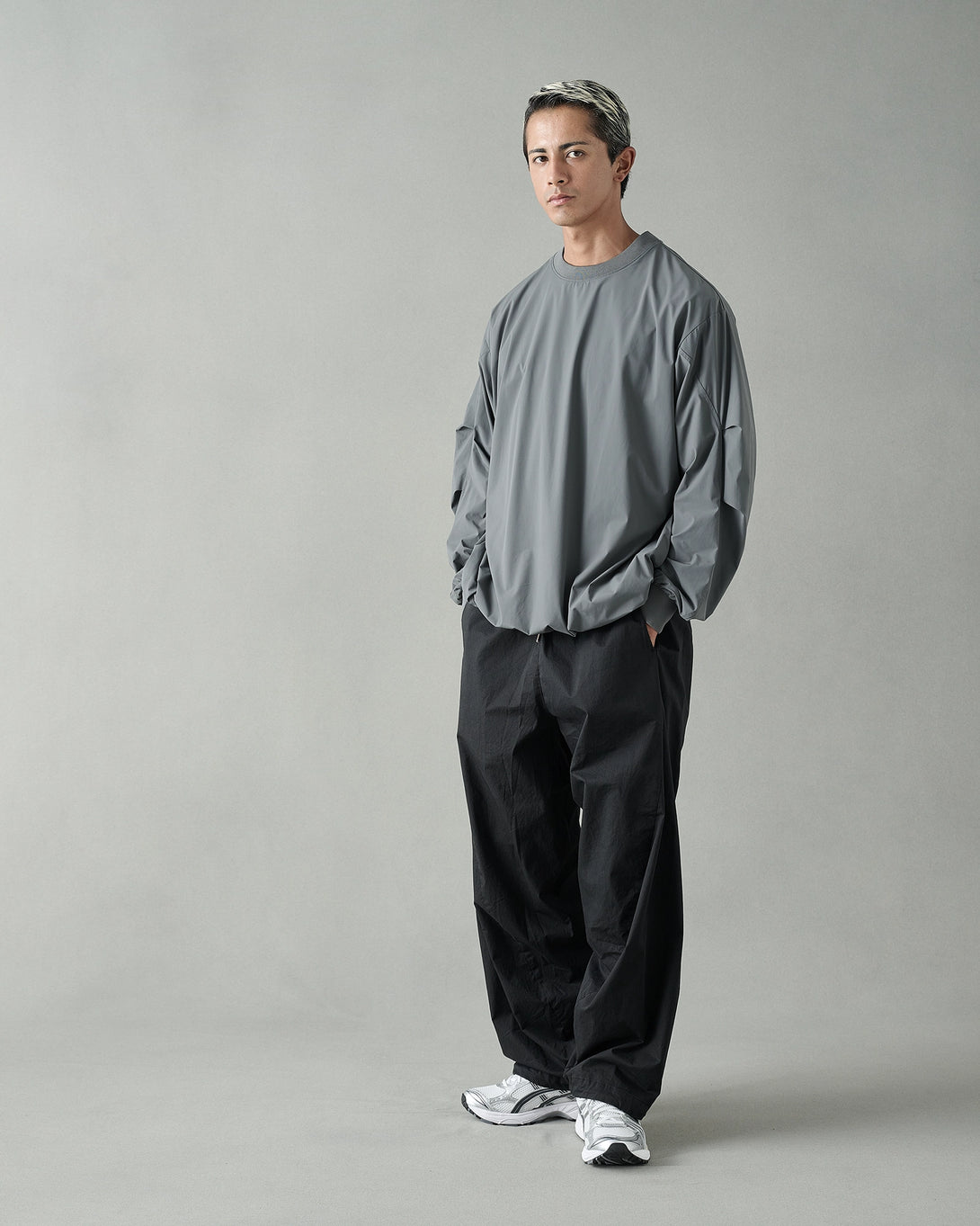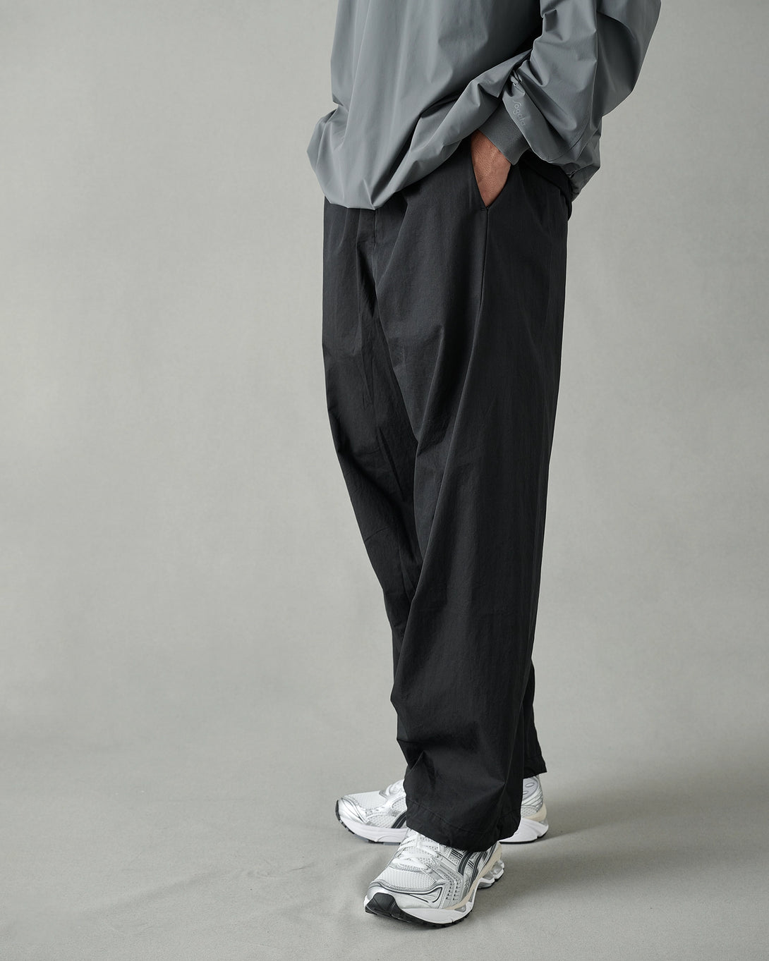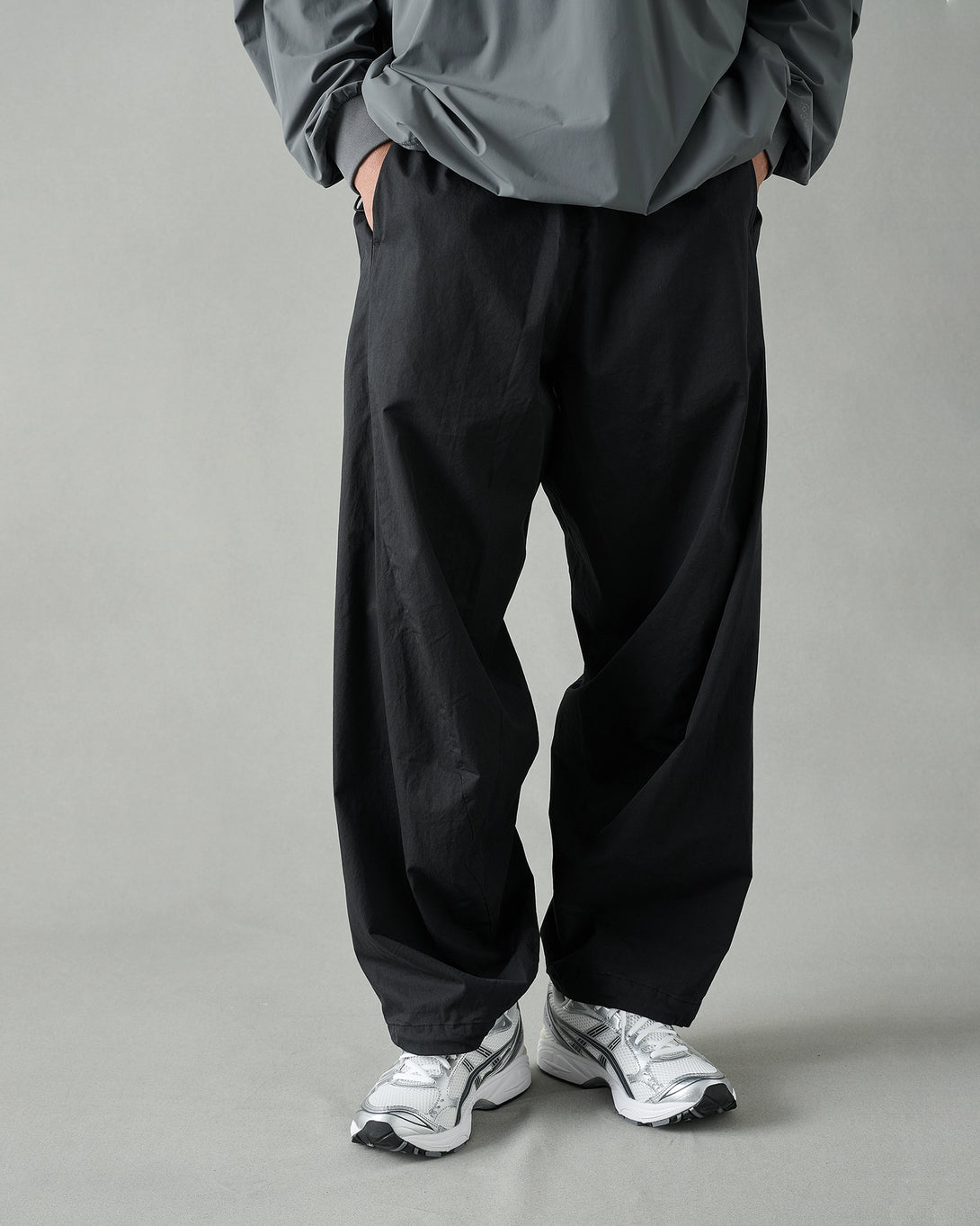 コットン100%の素材を使用し、サラッとした軽やかな履き心地が特徴の一本。ゆとりのあるワイドシルエットながらも、無駄のないシンプルなデザインで、日常使いからストリートスタイルまで幅広く活躍します。季節を問わず快適に着用できる万能アイテムです。