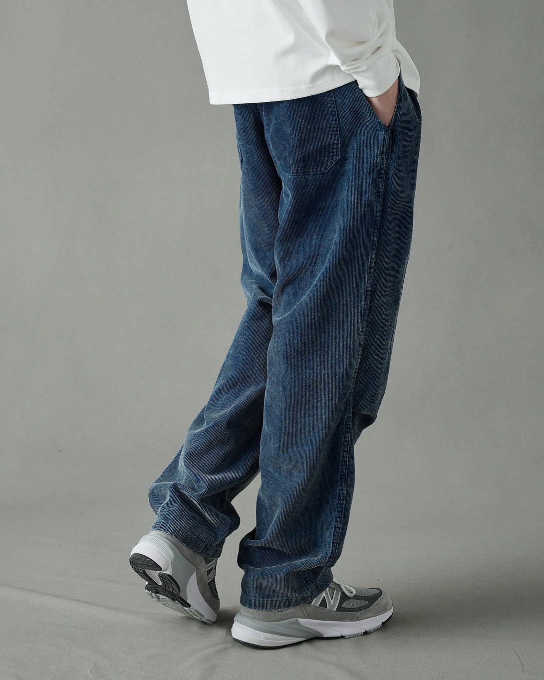 ウォッシュ加工を施したコーデュロイ素材は、独特のフェード感と立体感を持ち、穿き込むほどに味わいが増します。