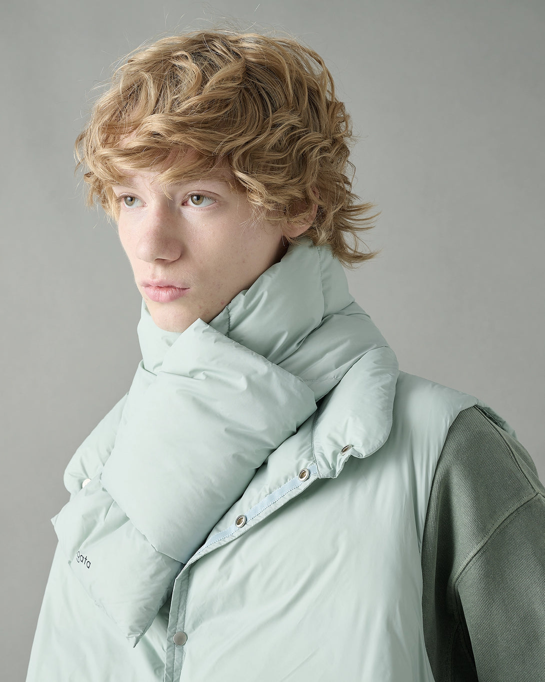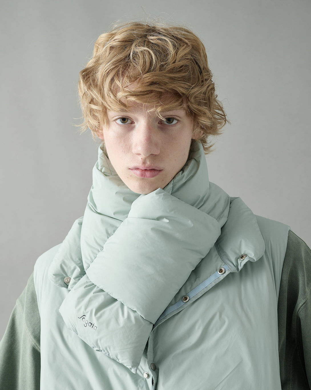 軽量ダウンを使用した保温性抜群のマフラー。柔らかくふっくらとした質感で首元をしっかり暖めながらも、驚くほど軽い着け心地です。シンプルなデザインなのでどんなアウターにも合わせやすく、秋冬のスタイリングに欠かせないアイテムです。